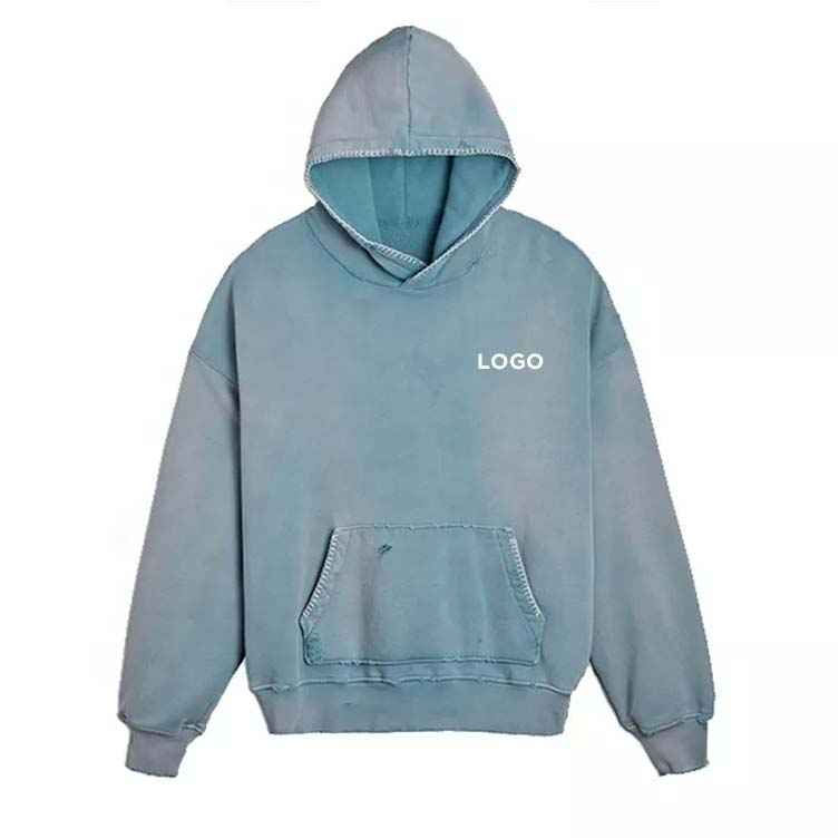 Custom Heavyweight Cotton Acid Washed Waterproof Pullover Embroidered Hoodie Men High Quality Oversized Winter Streetwear