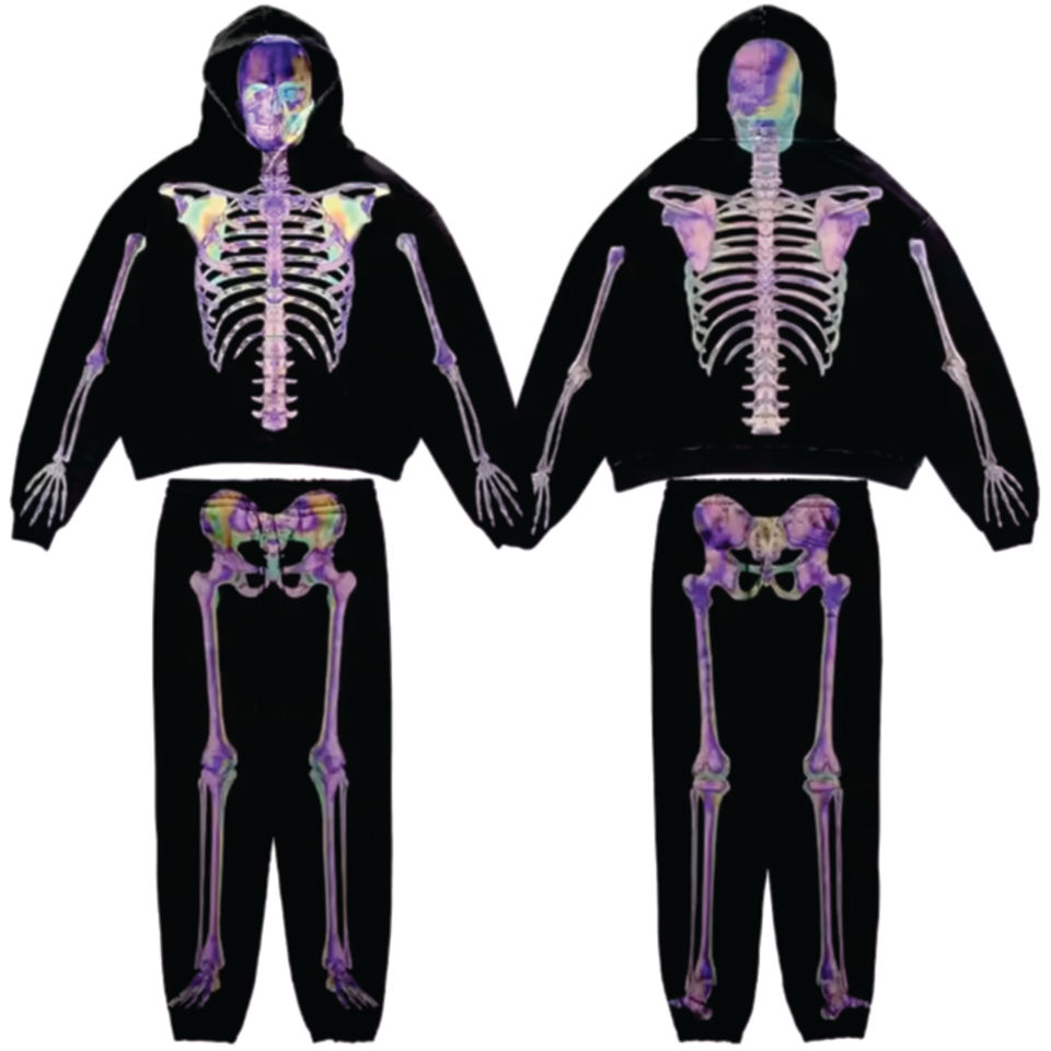ชุดจ็อกเกอร์ผ้าฝ้ายเฮฟวี่เวทสำหรับผู้ชายชุดวิ่งแบบเย็บปะติดมีฮู้ดเอวกางเกงระบายอากาศไซส์ใหญ่พิเศษ