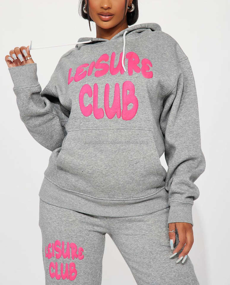 เสื้อฮู้ดผ้าคอตตอนพิมพ์ลายมีฮู้ดโฟมพิมพ์ลายพัฟขอบตัดเย็บแบบดิบ3D