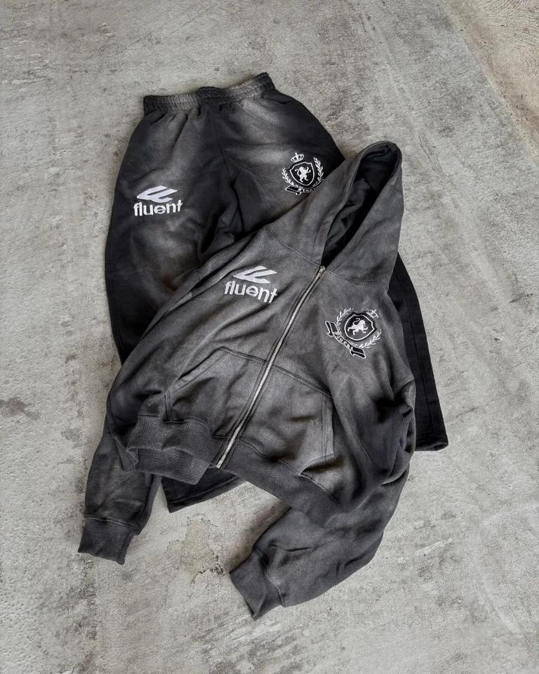 ชุดวอร์มผ้าฝ้ายสำหรับฤดูหนาวของผู้ชายชุดเสื้อมีฮู้ดและกางเกงซักด้วยกรดซักด้วยเอนไซม์แบบออกแบบได้ตามต้องการ