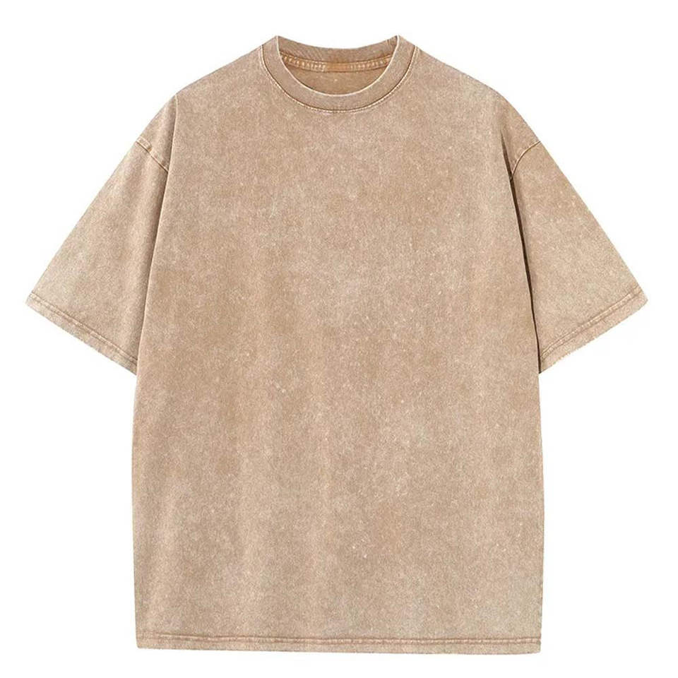 เสื้อยืดคอตตอนหนาน้ำหนักมากทรงโอเวอร์ไซส์สำหรับผู้ชาย สไตล์วินเทจ ล้างสีแบบแอซิดวอช แขนสั้น สำหรับผู้ชาย แบบสั่งทำพิเศษ