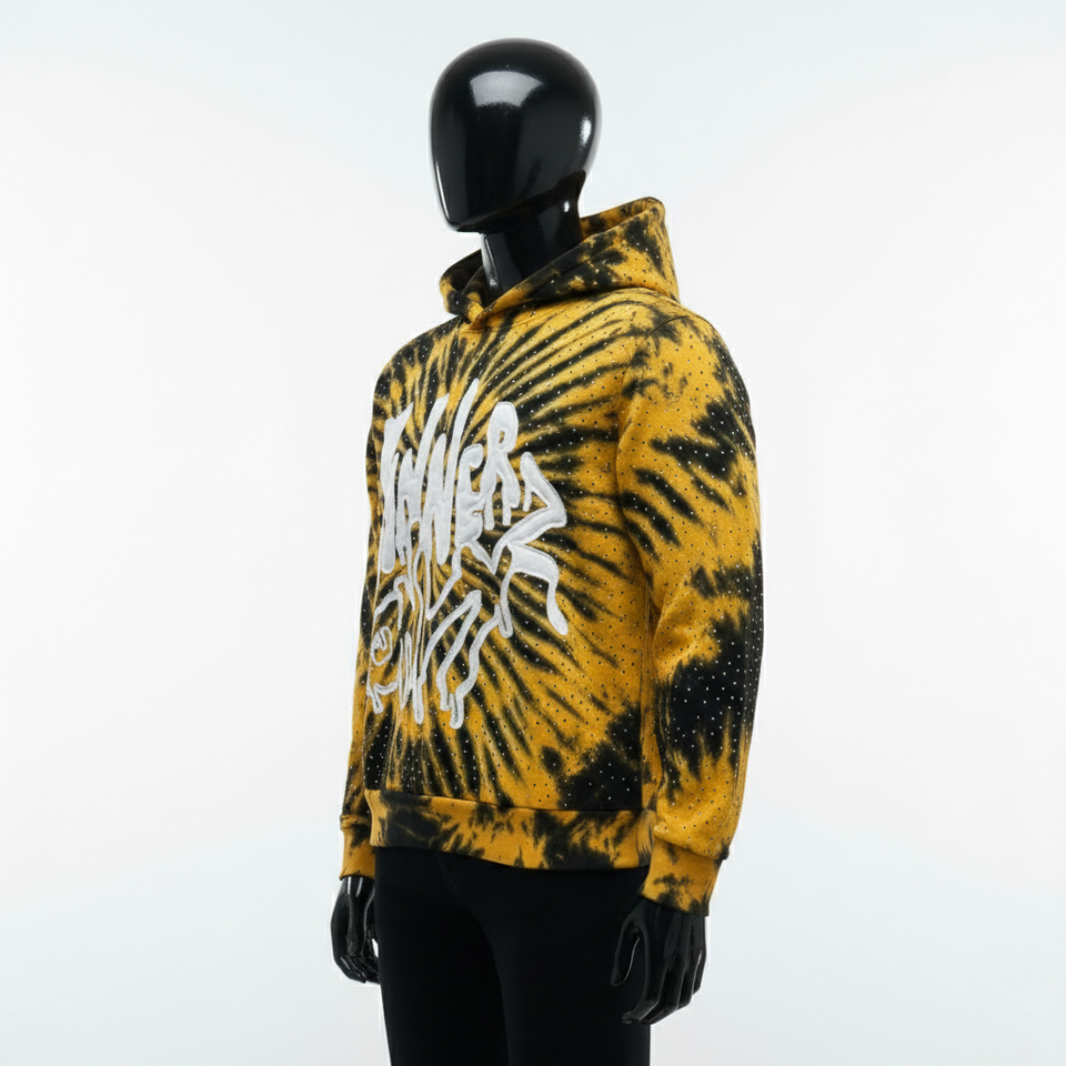 ผู้ผลิตเสื้อฮู้ดดี้สตรีทแวร์โอเวอร์ไซส์ผ้าฝ้ายหนานุ่มประดับเพชรเทียมสไตล์ดิสเทรส งานปักคุณภาพสูง