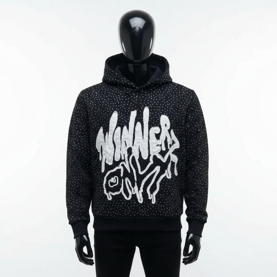 ผู้ผลิตเสื้อฮู้ดดี้ผ้าฟลีซโอเวอร์ไซส์แบบหนา ตกแต่งด้วยคริสตัลและลายปักคุณภาพสูง สไตล์สตรีทแวร์