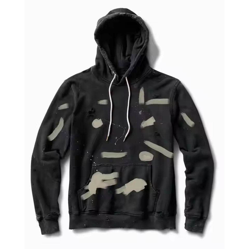 Custom Heavyweight Distressed Acid Washed Sun Fade Hoodie Vintage Streetwear No String Graphic Patch Cut Sew Winter Digital