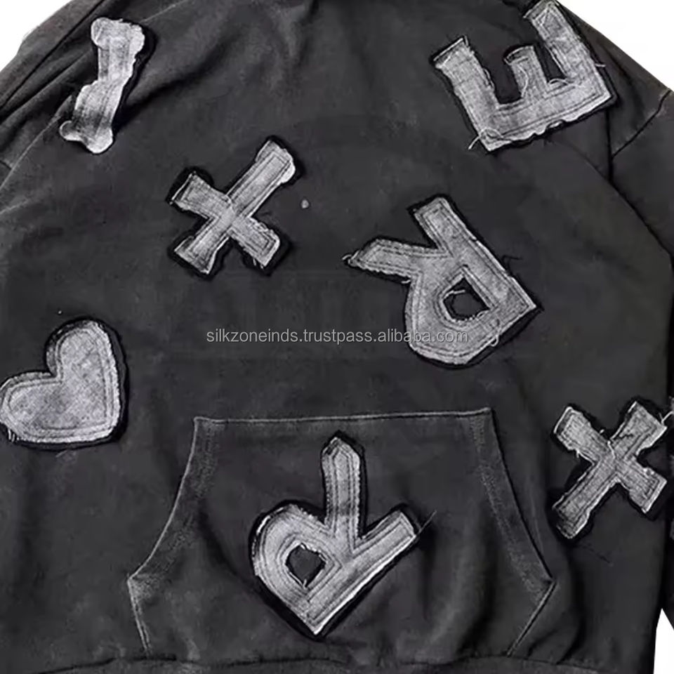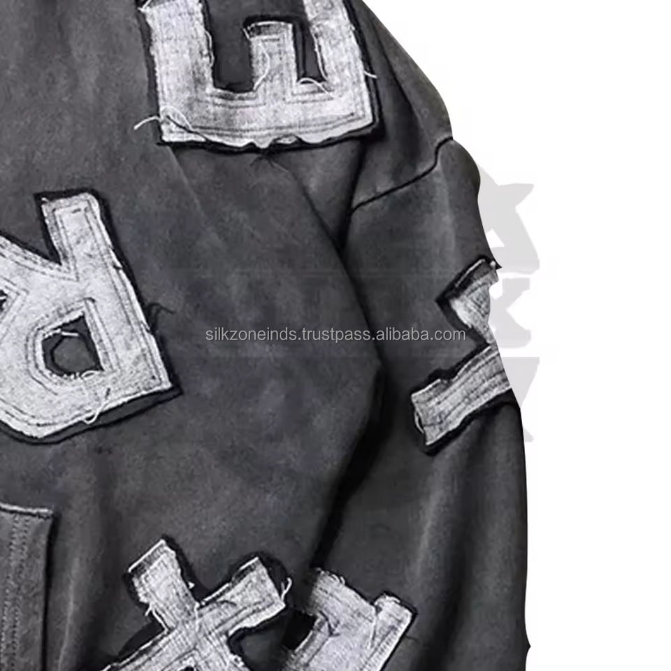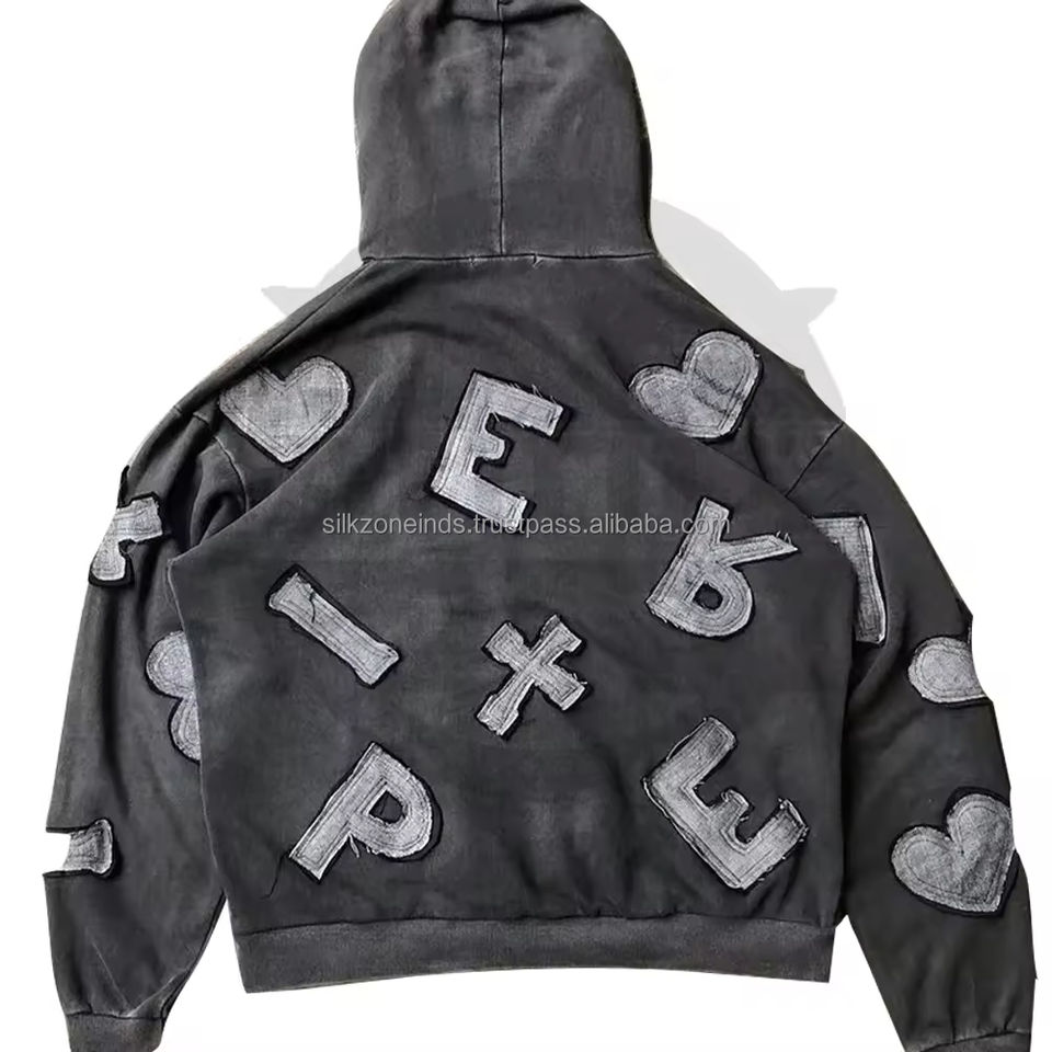 เสื้อฮู้ดดี้ผ้าฟลีซเนื้อหนาพิเศษ สไตล์วินเทจ ล้างสีแบบแอซิด ผ้าฝ้ายพิมพ์ลายพัฟ ระบายอากาศได้ดี ปักตัวอักษรโลโก้