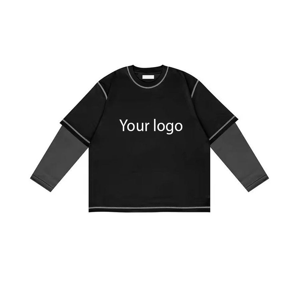 เสื้อยืดแขนยาวสองชั้นแบบหนาพิเศษ สั่งทำได้ตามต้องการ OEM เสื้อผ้าสตรีทแวร์สำหรับทุกเพศ พิมพ์ลายโลโก้ตามสั่ง สไตล์ลำลอง เสื้อยืด 2 in 1