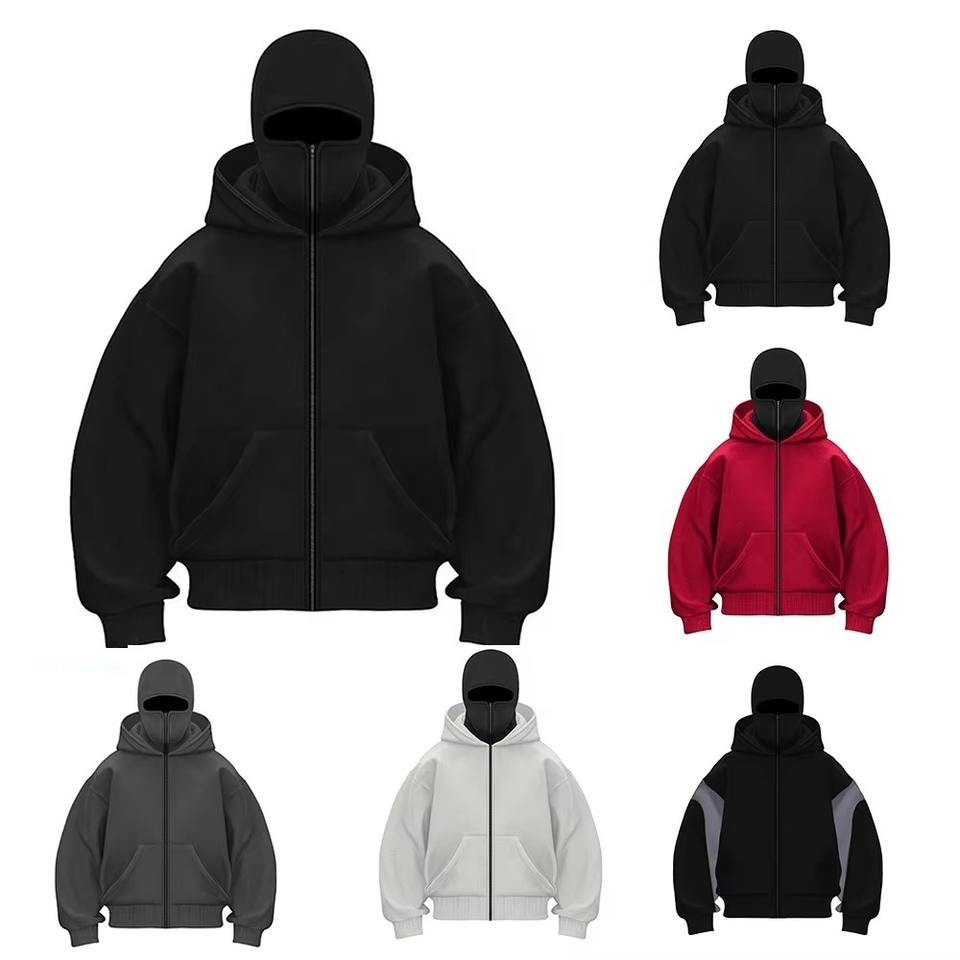 เสื้อฮู้ดดี้ผ้าเฟรนช์เทอร์รี่เนื้อหนาพิเศษ 430gsm แบบสวมหัวมีซิปเต็มตัว พร้อมฮู้ดปิดหน้า ระบายอากาศ กันลม สำหรับผู้ชาย เหมาะสำหรับฤดูหนาว