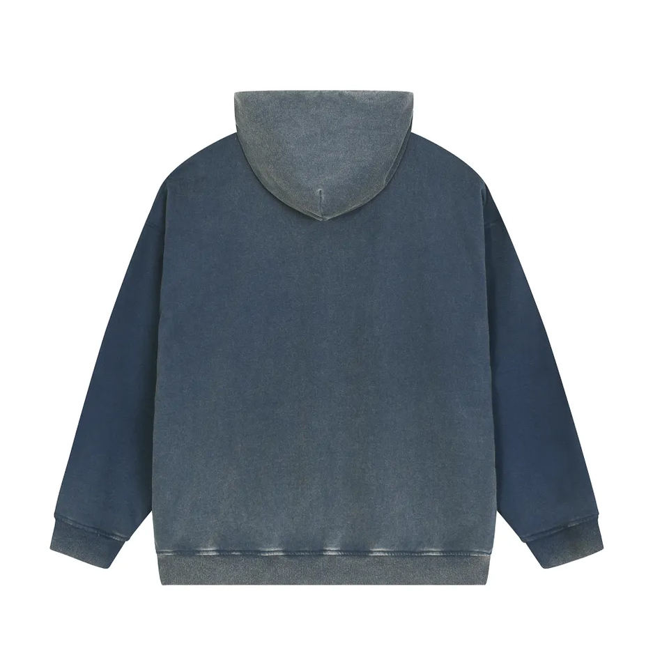 เสื้อฮู้ดดี้ทรงโอเวอร์ไซส์ผ้าเฟรนช์เทอร์รี่เนื้อหนาแบบสั่งทำพิเศษ ไม่มีเชือกผูก ไม่มีกระเป๋า ลายไล่เฉดสีสไตล์วินเทจ ซักย้อมแบบแอซิดวอช