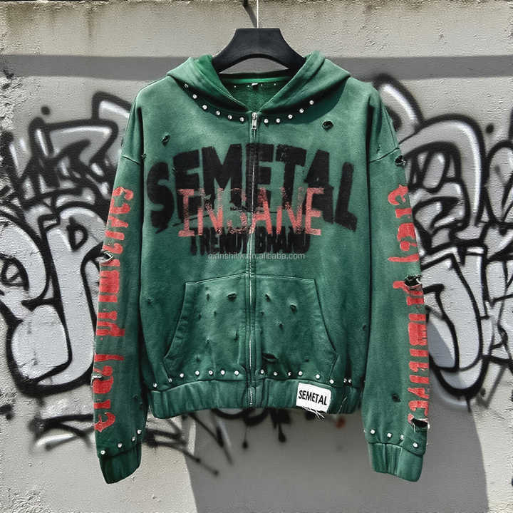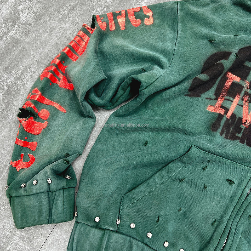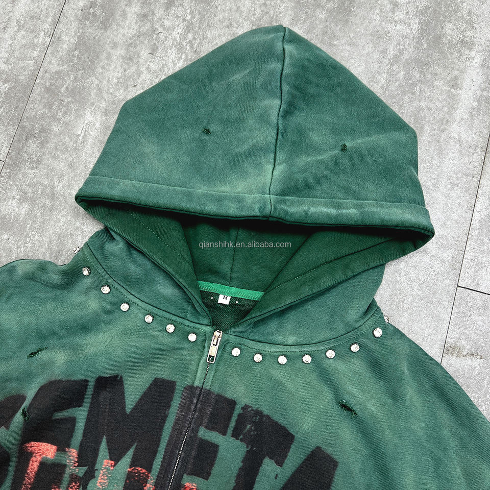 เสื้อฮู้ดมีซิปรูดรูดไซส์ใหญ่พิเศษเสื้อฮู้ดซักกรดเสื้อมีฮู้ดแนวสตรีทแต่งพลอยเทียม