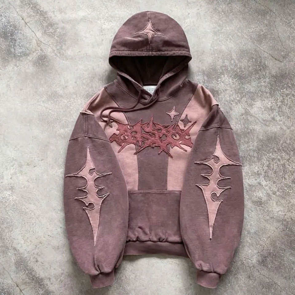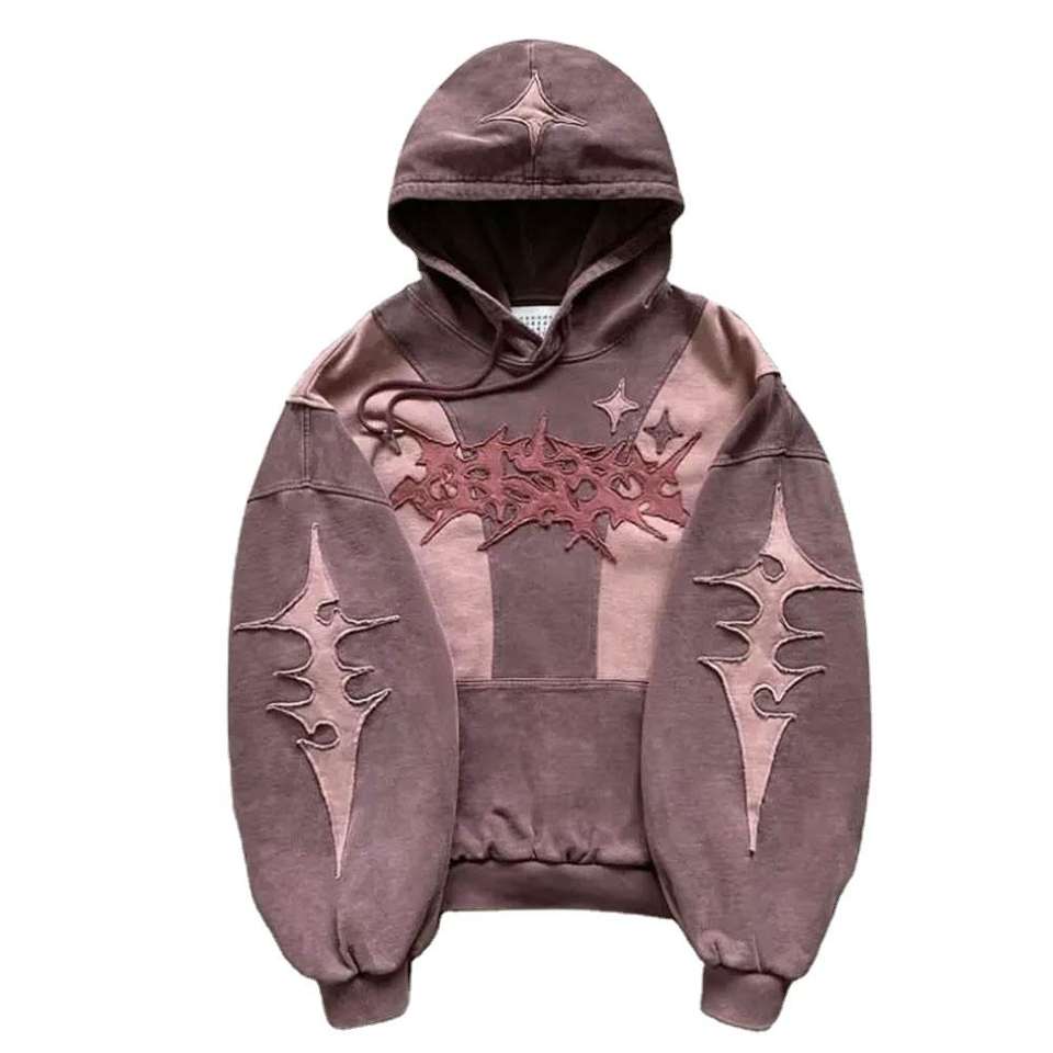เสื้อฮู้ดเฮฟวี่เวทที่ออกแบบได้ตามต้องการเสื้อผ้าแนวสตรีทแวร์แนววินเทจซีดจางปราศจากแสงแดดปักลายสำหรับฤดูหนาว