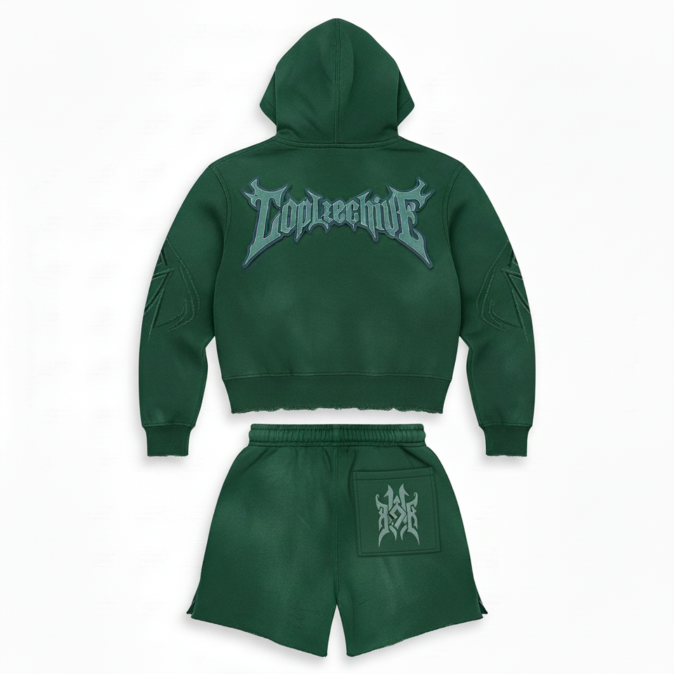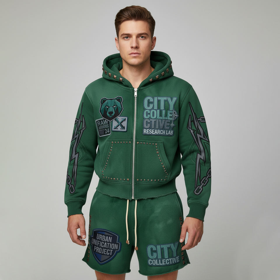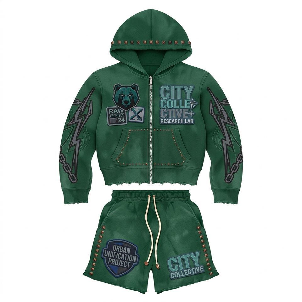ชุดเซ็ตเสื้อฮู้ดดี้แขนสั้นผ้าคอตตอนหนานุ่มพิเศษสำหรับฤดูร้อน พิมพ์ลายสกรีน ประดับเพชร ซิป ผ้าเฟรนช์เทอร์รี่ แห้งเร็ว ล้างสีแบบแอซิดวอช สไตล์สตรีทแวร์