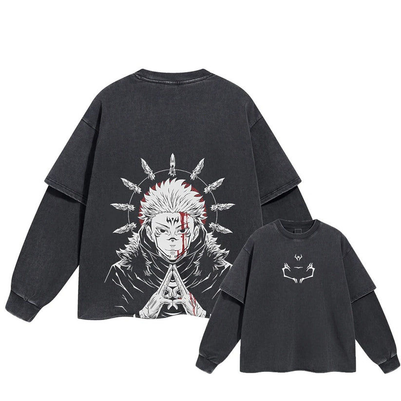 เสื้อยืดแขนยาวผู้ชายแบบหนาพิเศษสองชั้น พิมพ์ลายดิจิตอลผ้าฝ้าย 100% สไตล์ใหม่ทรงโอเวอร์ไซส์