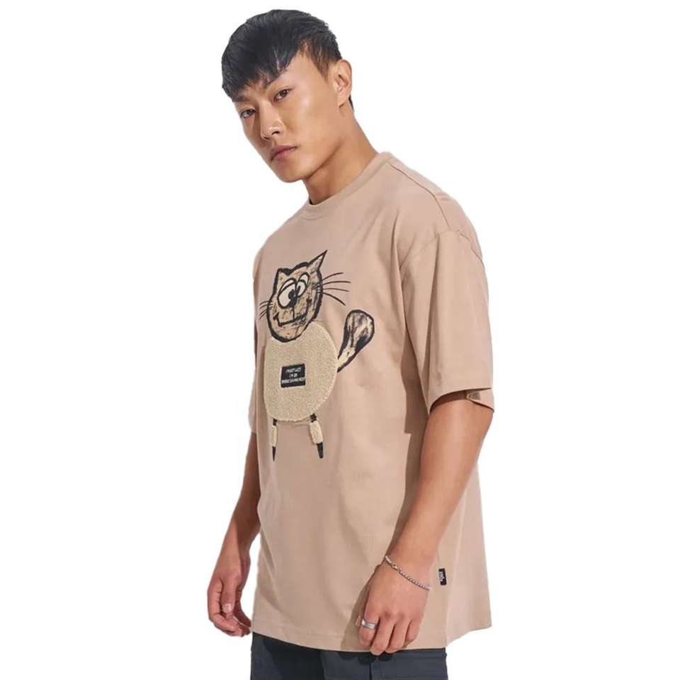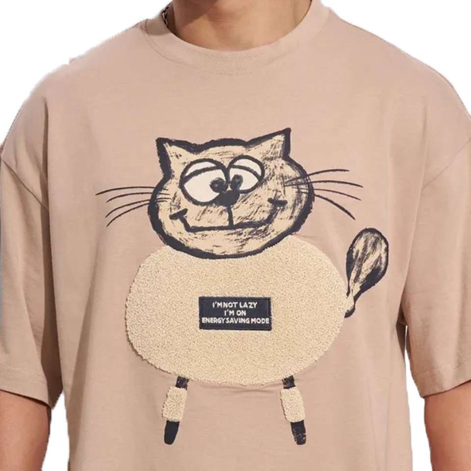 เสื้อยืดสตรีทแวร์ทรงโอเวอร์ไซส์ ผ้าคอตตอน 100% หนานุ่มพิเศษ ตัดเย็บแบบไหล่ตก ผ้าเนื้อละเอียด ป้องกันขนร่วง สำหรับผู้ชาย