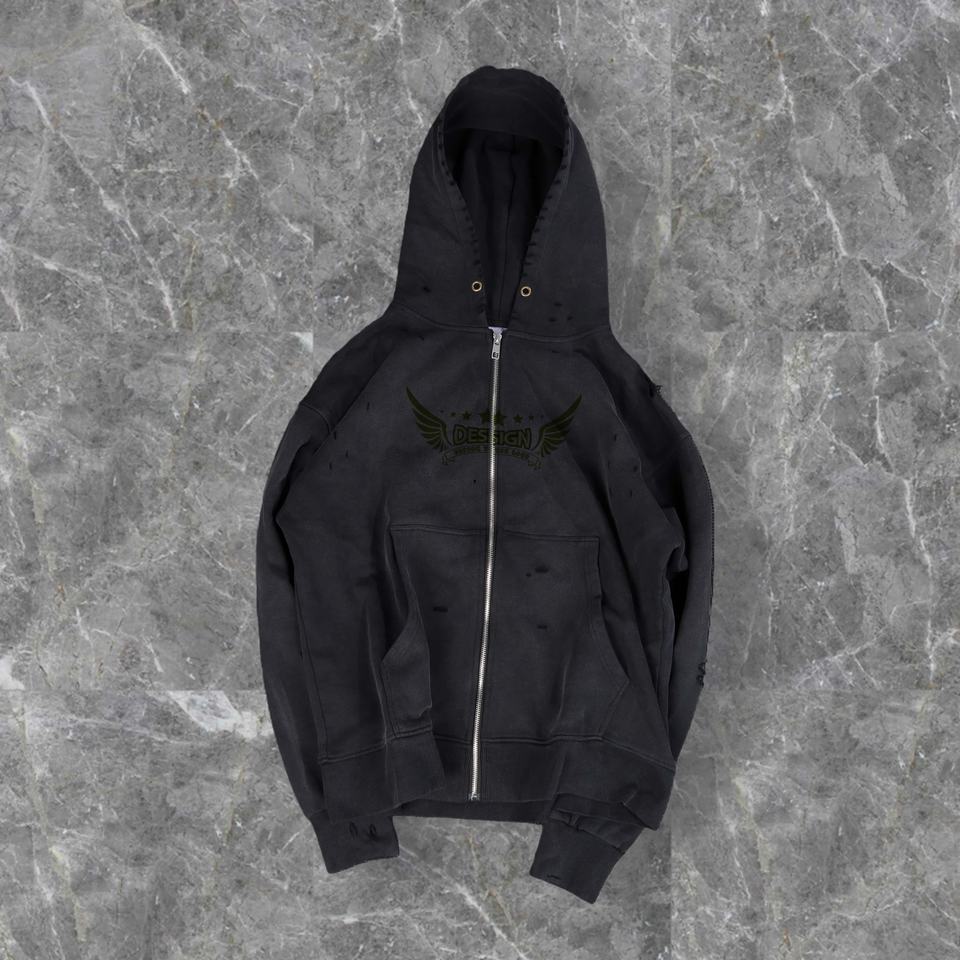 เสื้อฮู้ดดี้ผ้าคอตตอนหนานุ่มแบบซิป สไตล์สตรีทแวร์ ลุควินเทจ ทรงบ็อกซี่ สำหรับผู้ชาย