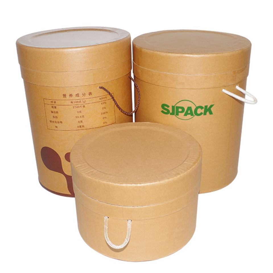 กลองไฟเบอร์กระดาษคราฟท์ขนาดเล็กแบบมีหูหิ้ว ความสูงตามสั่ง 20-65 ซม.