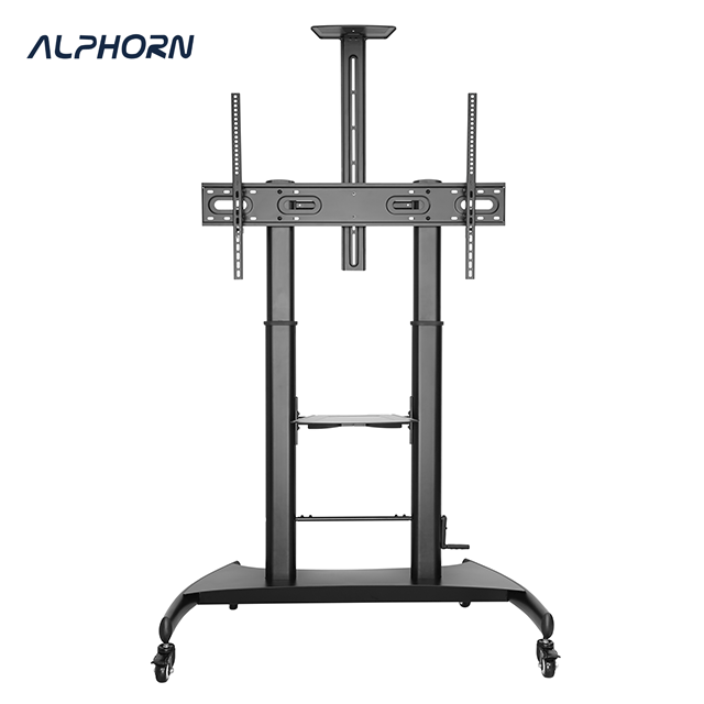 รถเข็นทีวีแบบปรับความสูงได้ พร้อมมือหมุน รองรับ VESA 1000x600 มม. ผลิตจากเหล็กและพลาสติก รับน้ำหนักได้ 100 กก. สำหรับทีวีขนาด 60-100 นิ้ว