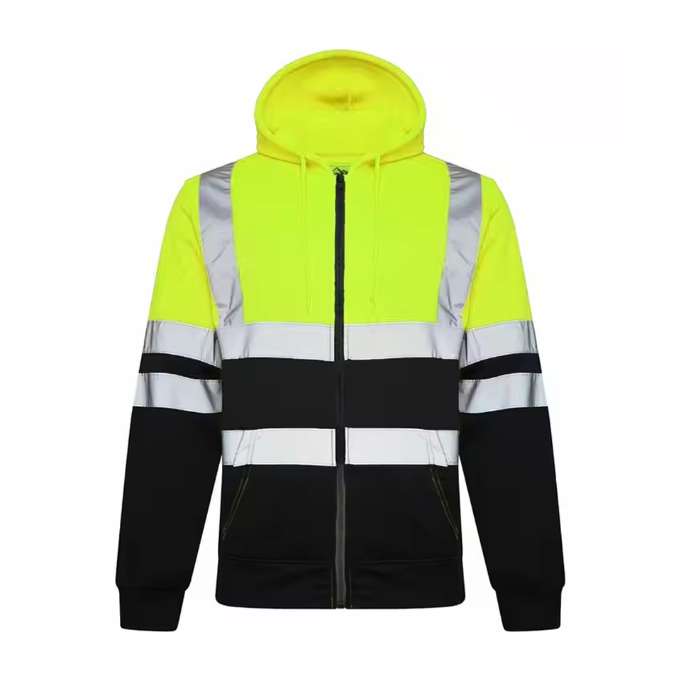 เสื้อสเวตเตอร์ขนแกะดีไซน์ชั้นนำเสื้อแจ็กเก็ตทำงานมีฮู้ดมีซิปแบบ2024ความปลอดภัยมองเห็นได้ตามต้องการ