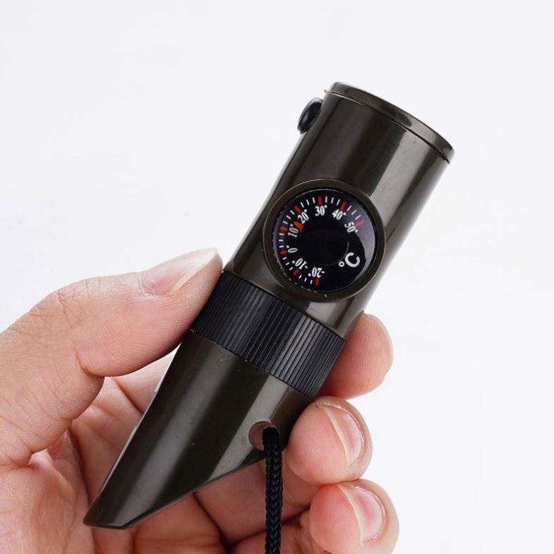 นกหวีดเอาชีวิตรอดกลางแจ้งแบบกันน้ำ เสียงดังพิเศษ พร้อมเข็มทิศ ไฟฉาย LED แผ่นสะท้อนแสง และสายคล้องคอ สำหรับตั้งแคมป์ในฤดูใบไม้ผลิ