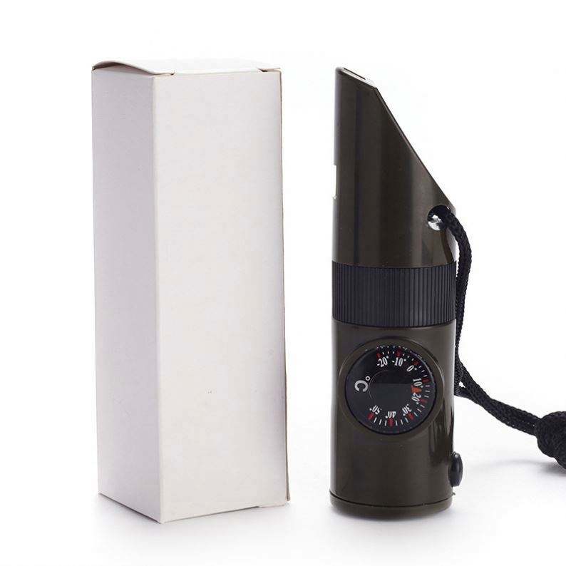 นกหวีดเอาตัวรอดกลางแจ้งแบบกันน้ำ เสียงดังพิเศษ พร้อมเข็มทิศ ไฟฉาย LED แผ่นสะท้อนแสง และสายคล้องคอ สำหรับตั้งแคมป์ในฤดูใบไม้ผลิ