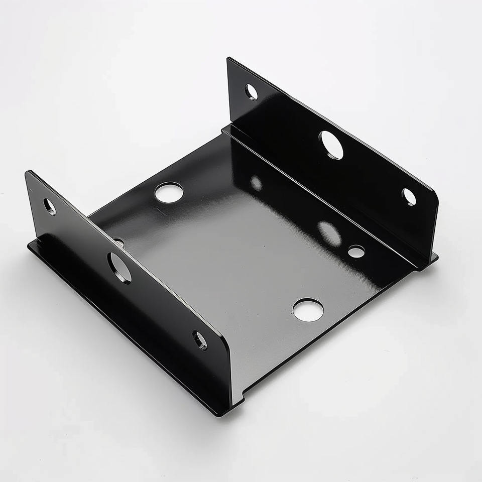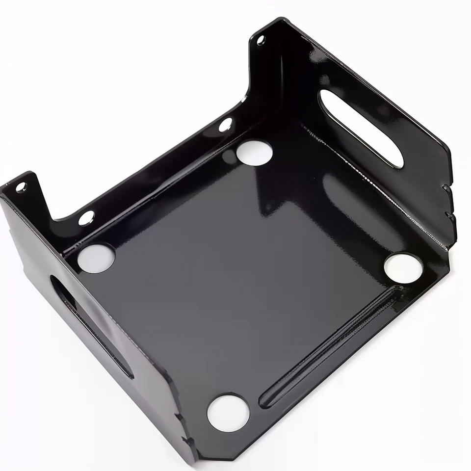 งานผลิตโลหะแผ่นสีดำเงาแบบกำหนดเอง พร้อมบริการขึ้นรูปด้วยเครื่อง CNC ความแม่นยำสูง ฐานยึดเหล็กแบบรูปตัวยูสำหรับอุปกรณ์อิเล็กทรอนิกส์