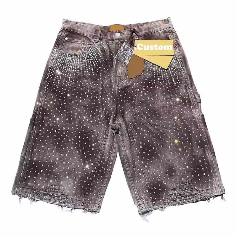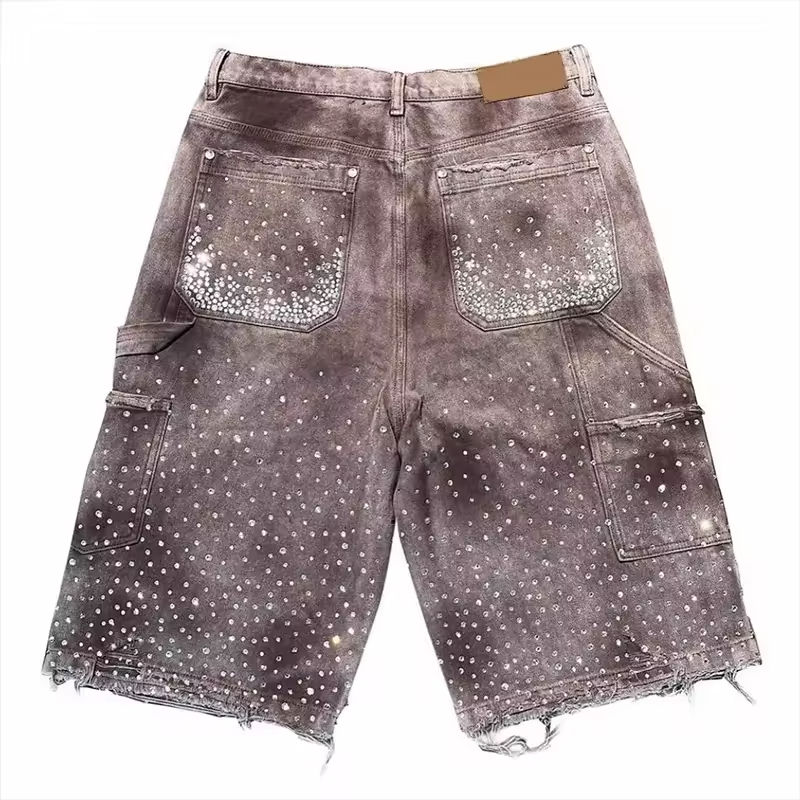 กางเกงยีนส์ขาสั้นทรงหลวมสไตล์กราฟฟิตี้ปักลายคุณภาพสูงสำหรับผู้ชาย แบรนด์แฟชั่นสุดฮิต ใส่สบายในฤดูร้อน