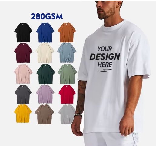 เสื้อยืดผู้ชายทรงหลวมแบบโอเวอร์ไซส์ ผ้าคอตตอน 100% คุณภาพสูง สีพื้น น้ำหนัก 280GSM ผลิตแบบเป็นมิตรต่อสิ่งแวดล้อม แบบถัก จำหน่ายจำนวนมาก