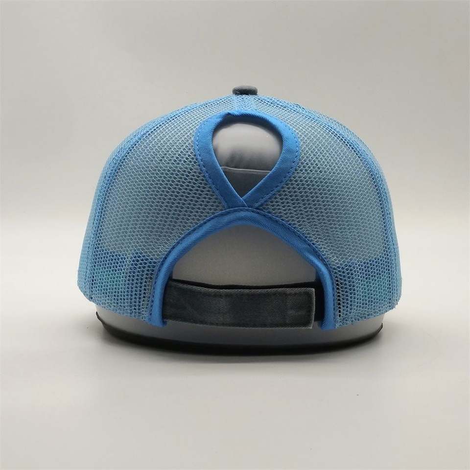หมวกเบสบอลทรงหางม้าสีเทาพิมพ์ลายคุณภาพสูง ผ้าฝ้ายแท้ 100% ลุคดิสเทรส ปรับขนาดได้ ใส่ได้ทั้งชายและหญิง