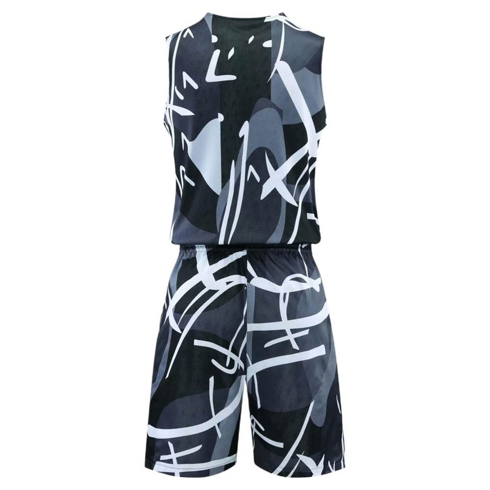 ชุดออกกำลังกายบาสเก็ตบอลผ้าโพลีเอสเตอร์100% พิมพ์ดิจิตอลเสื้อเจอร์ซี่ระบายอากาศไซส์ใหญ่พิเศษ