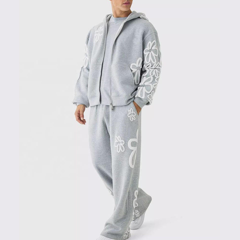 ชุดเซ็ต 2 ชิ้น เสื้อฮู้ดซิปผ้าฝ้ายคุณภาพสูงสำหรับฤดูหนาว กางเกงจ็อกกิ้งทรงหลวม สไตล์สปอร์ต ชุดวอร์มออกกำลังกายสำหรับผู้ชาย