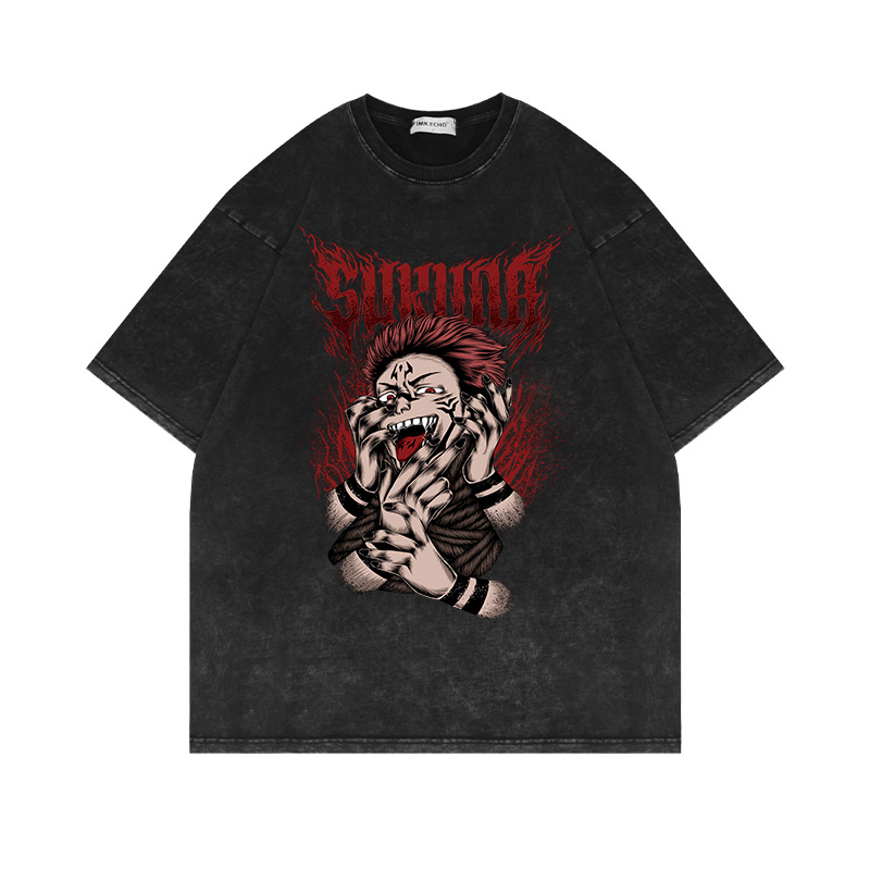 เสื้อยืดอนิเมะลายวินเทจ ล้างสีแบบแอซิด คุณภาพสูง ทรงโอเวอร์ไซส์ สำหรับผู้ชาย