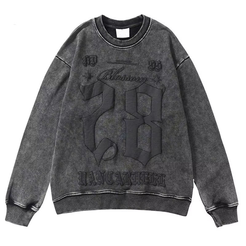 เสื้อสเวตเตอร์แบบสวมหัวสำหรับผู้ชายเสื้อสเวตเตอร์แบบสวมหัวไหล่ปักลายนูนน้ำยาล้างตามสั่ง