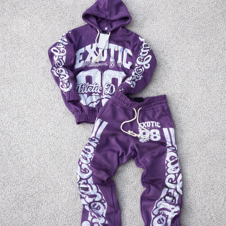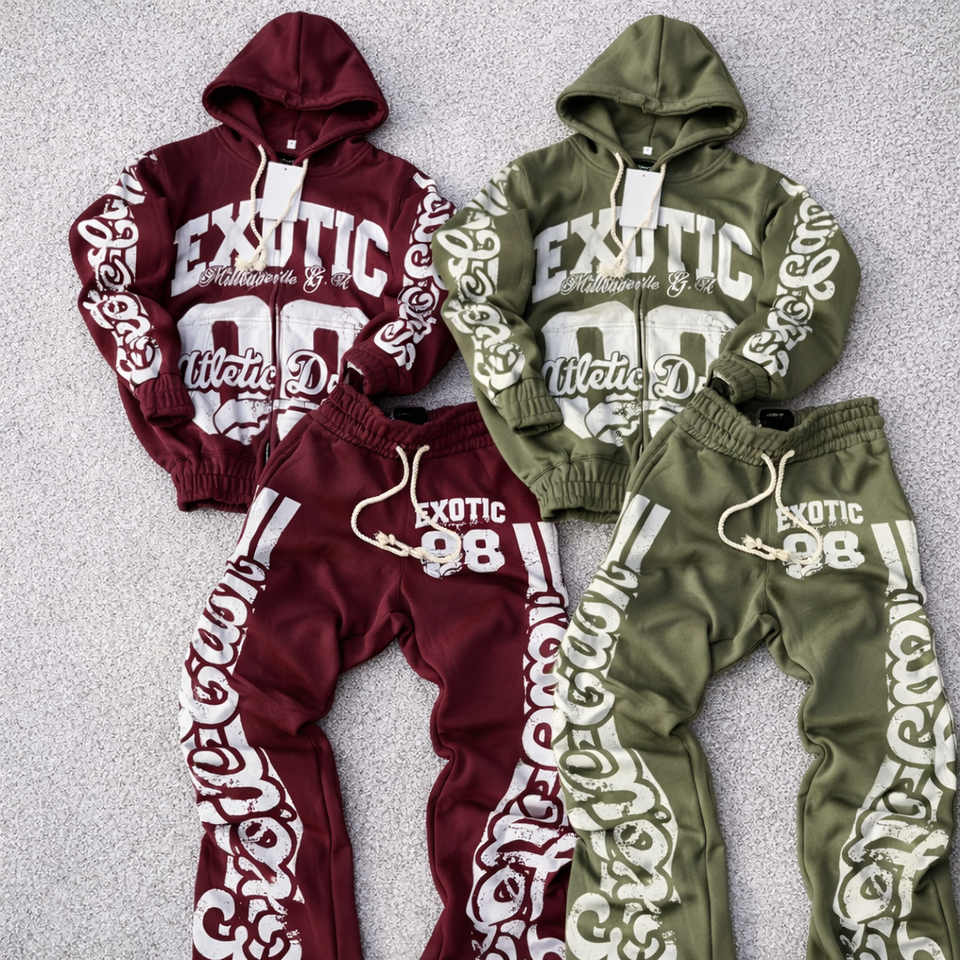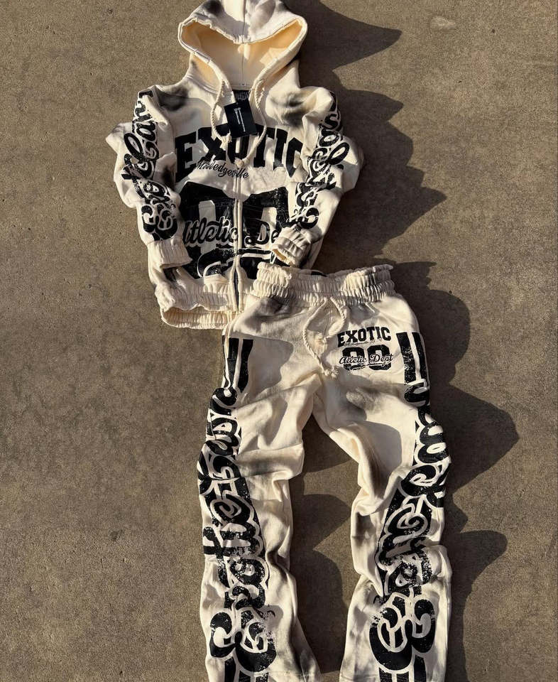 ชุดกีฬาผู้ชายคุณภาพสูงแบบย้อมสีเอซิด พิมพ์ลายกางเกงวอร์มและเสื้อฮู้ดดี้ สำหรับผู้ชาย Habillement Homme Complet 2026