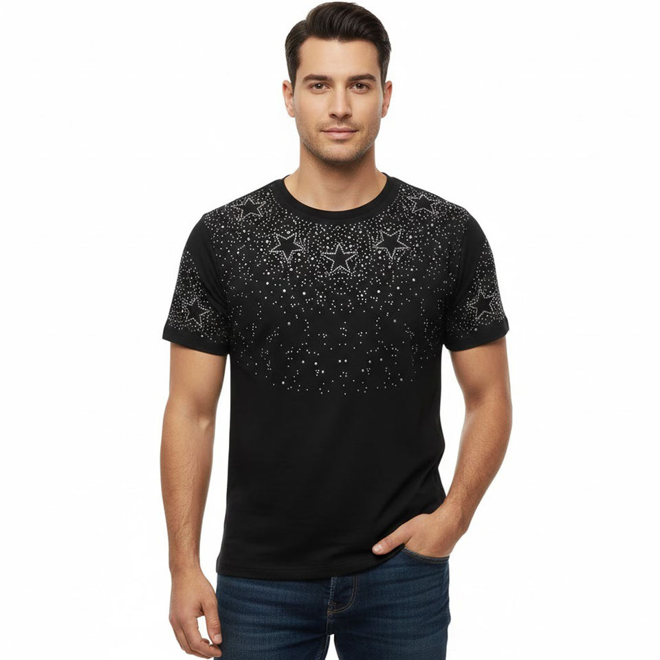 เสื้อยืดสตรีทแวร์สีดำคุณภาพสูงแบบสั่งทำพิเศษพร้อมดีไซน์คริสตัลรูปดาว – เสื้อยืดผู้หญิงทรงหลวมสไตล์ลำลอง" แฟชั่นสตรีทแวร์ลำลอง