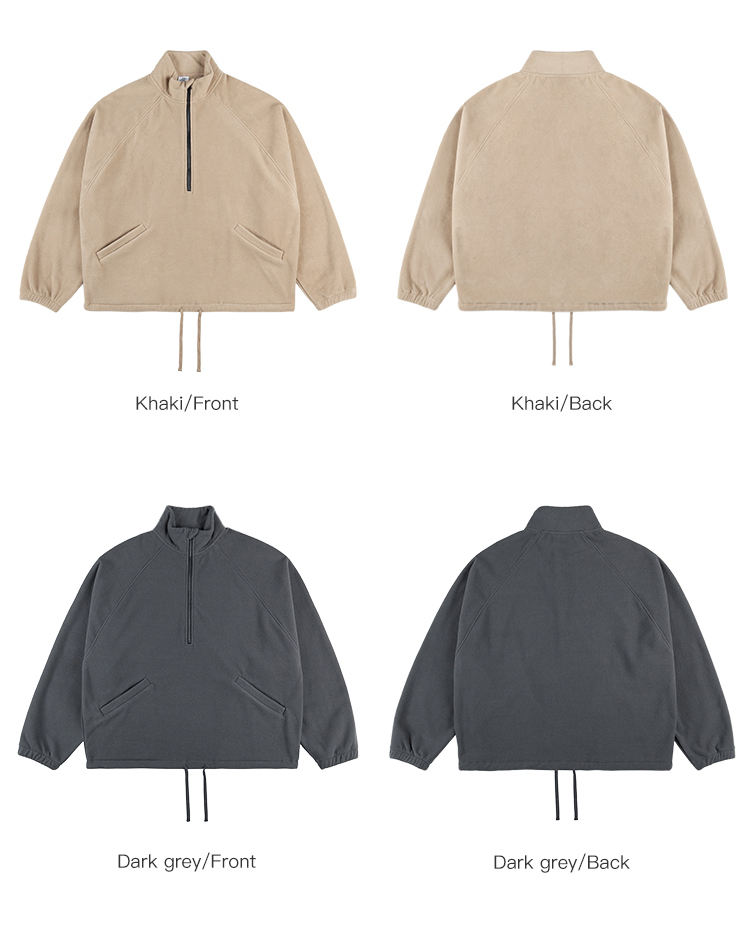 เสื้อฮู้ดแจ็กเก็ตแบบสวมหัวสำหรับผู้ชายผ้าฟลีซแบบรูดซิปครึ่งตัว