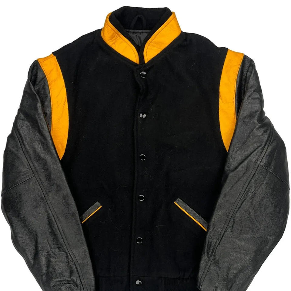 แจ็คเก็ตหนังแท้สีดำปักลายแฟชั่นกันน้ำคุณภาพสูงแบบสั่งทำพิเศษสำหรับผู้ชายไซส์ใหญ่