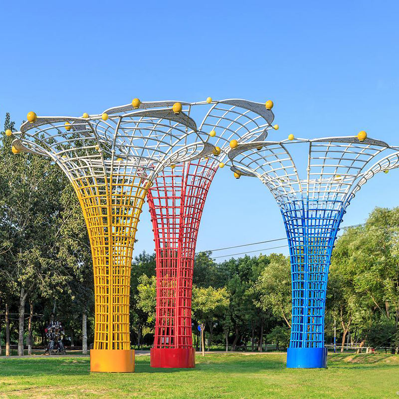 ประติมากรรมต้นไม้เหล็กกลวงสีสันสดใสคุณภาพสูงแบบกำหนดเอง สำหรับตกแต่งภายนอกอาคาร ศิลปะสมัยใหม่ งานศิลปะติดตั้งภายนอก