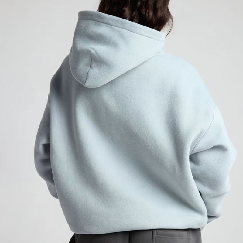 เสื้อครอปแบบมีฮู้ดผ้าคอตตอนสีฟ้าอ่อน