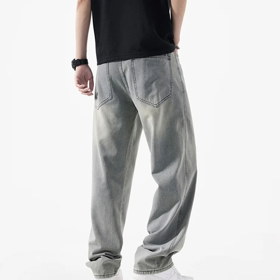 กางเกงยีนส์เดนิมผ้าฝ้ายคุณภาพสูงสำหรับผู้ชาย สไตล์สตรีทแฟชั่น ลุคขาดๆ ทรงหลวม