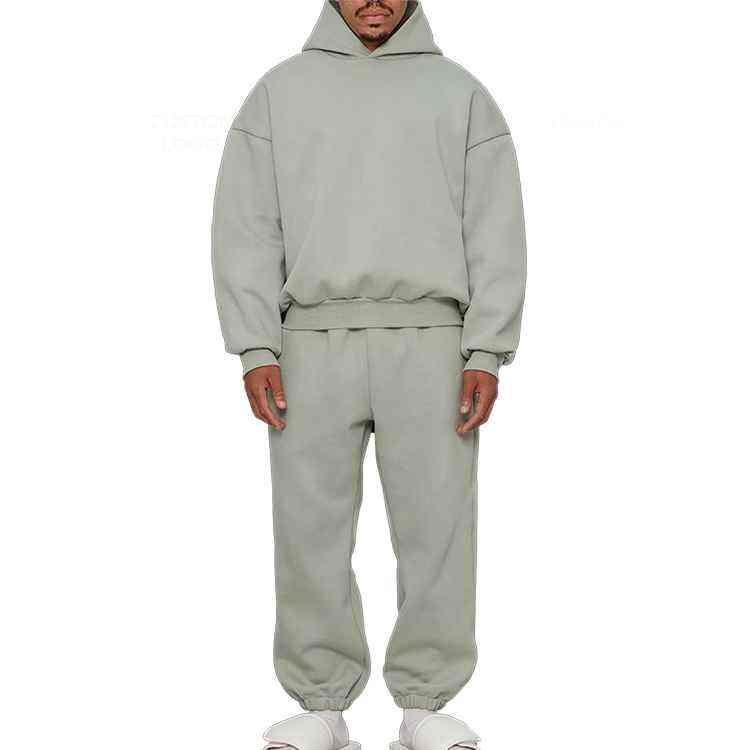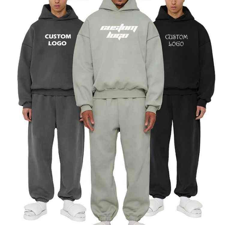 ชุดวอร์มผ้าฝ้ายแบบสวมหัวมีฮู้ดสำหรับผู้ชายชุดวอร์ม2ชิ้นแบบสวมหัวโอเวอร์ไซส์สำหรับผู้ชาย