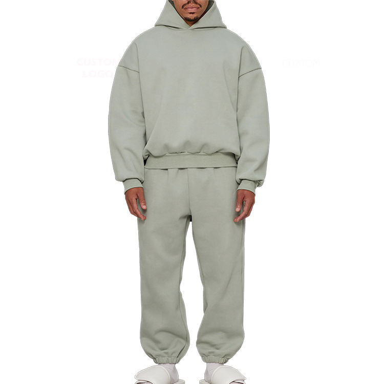 ชุดวอร์มผ้าฝ้ายคุณภาพสูงแบบกำหนดเองสำหรับผู้ชาย เสื้อฮู้ดดี้และกางเกงจ็อกเกอร์ ชุดฮู้ดดี้โอเวอร์ไซส์แบบสวมหัว กางเกงวอร์มแบบซักแล้ว ชุด 2 ชิ้นสำหรับผู้ชาย