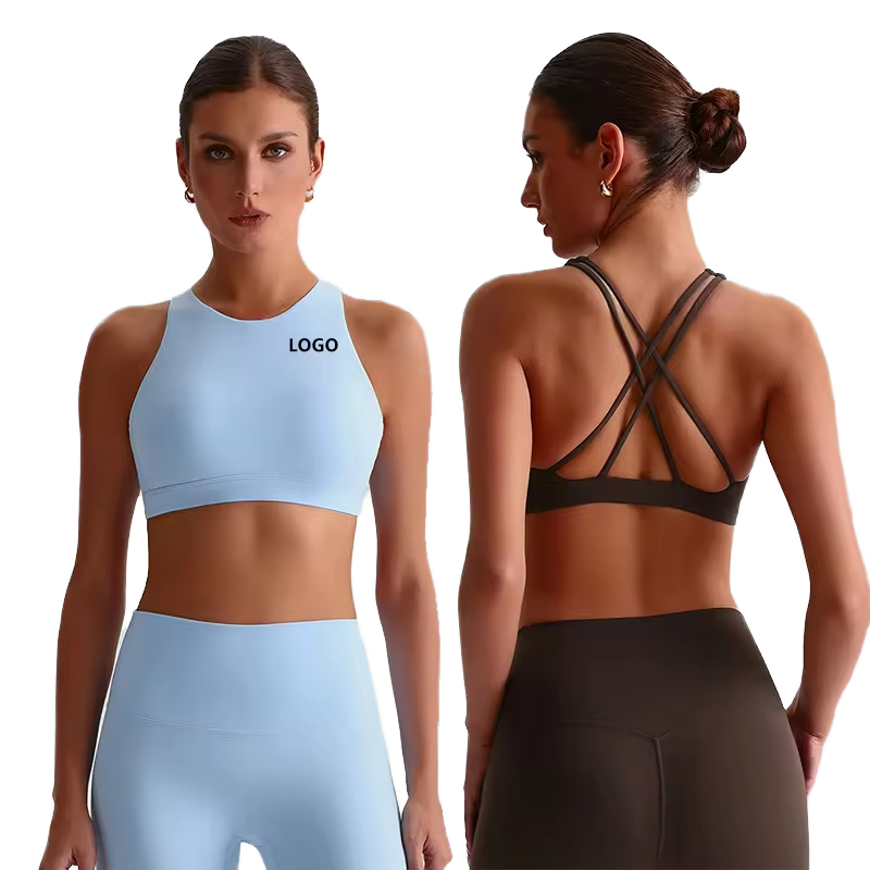 เสื้อชั้นในโยคะแบบไขว้หลังคุณภาพสูงสำหรับผู้หญิง สายรัดแบบกลับด้านได้ กระชับพอดีตัว มีไซส์พลัส รองรับแรงกระแทกสูง พร้อมโลโก้ด้านหน้า