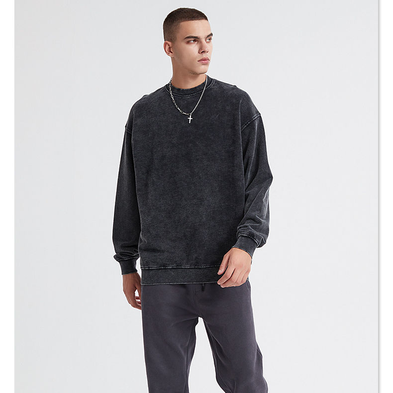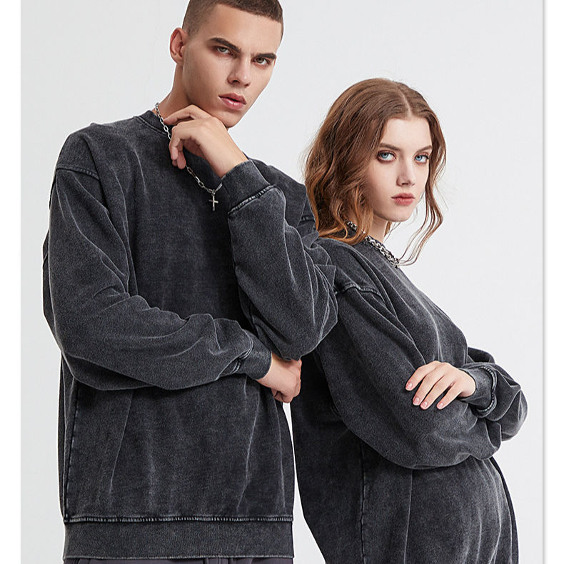 เสื้อถักกันหนาวผ้าฝ้ายขนาดใหญ่สไตล์วินเทจซักได้พิมพ์โลโก้ DTF DTG