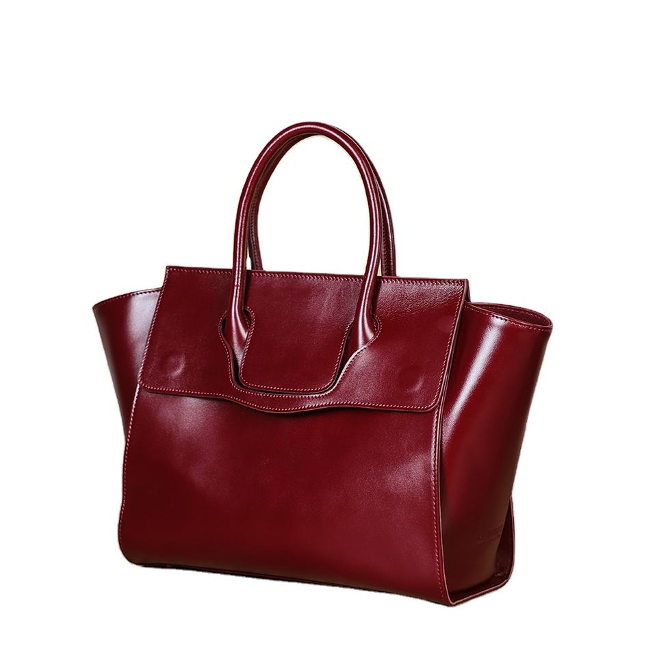 Custom High Quality Elegant Women's Wine Red Genuine Leather Laptop Tote Bag with Zipper Closure 13.3'' Multi-Compartment