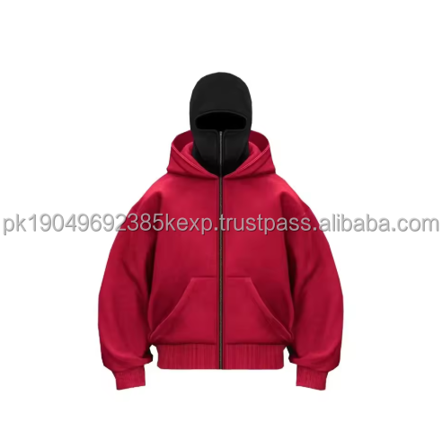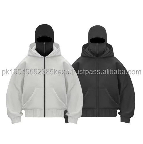 เสื้อฮู้ดดี้ผู้ชายปักลายหน้ากากนินจาคุณภาพสูงแบบสั่งทำพิเศษ ผ้าคอตตอนหนา ตกแต่งด้วยผ้าปะติดปะต่อ ฮู้ดสองชั้น ซิปหน้า ล้างสีแบบแอซิดวอช