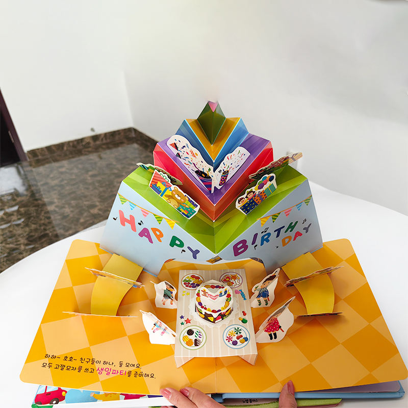 กระดาษเคลือบพิมพ์ภาพสำหรับเด็กปกแบบแข็งสมุดภาษาอังกฤษป๊อปอัพ3D วันเกิดให้ความสุขทำให้เพื่อน