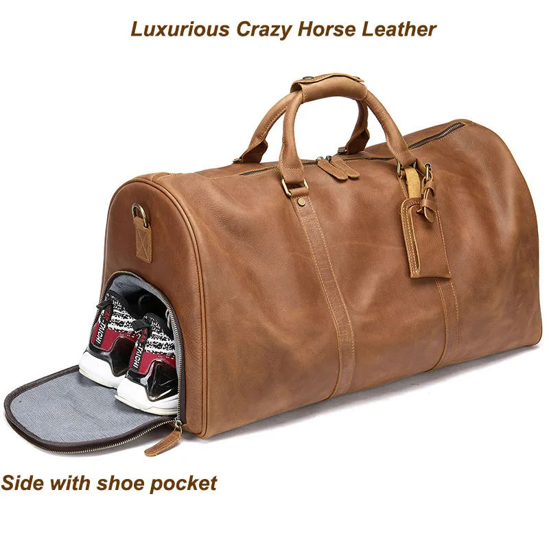 กระเป๋าดัฟเฟิลหนังแท้สำหรับผู้ชายกระเป๋าหนังแท้วินเทจ