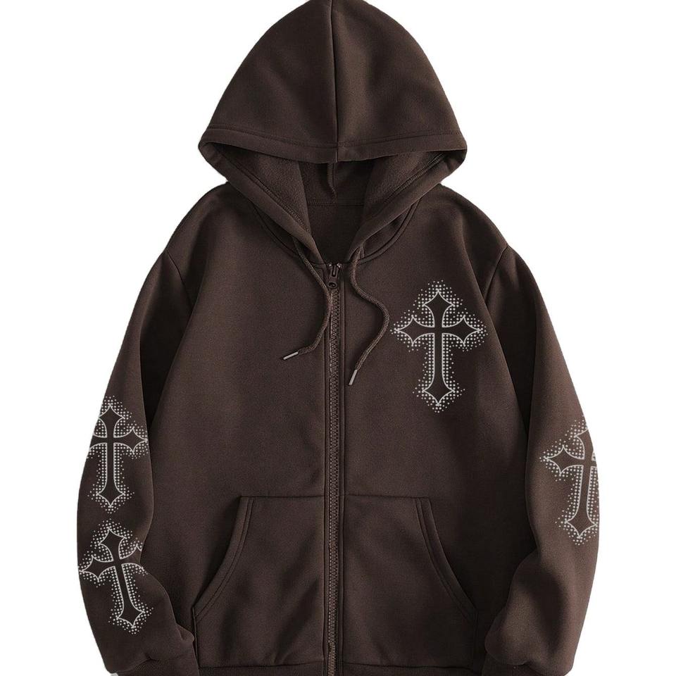 เสื้อฮู้ดโอเวอร์ไซส์ลายกราฟิกสำหรับผู้ชายเสื้อครอปมีฮู้ดโอเวอร์ไซส์ผ้าฝ้ายประดับพลอยเทียม
