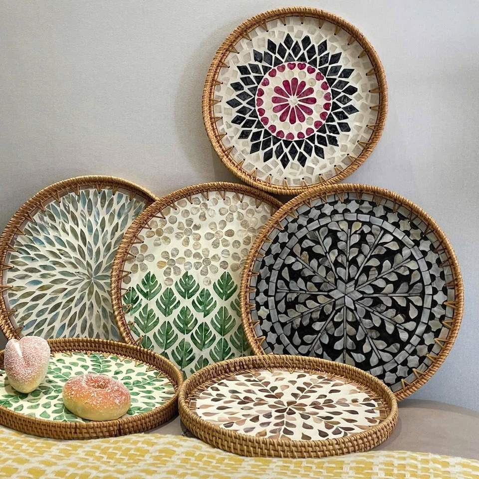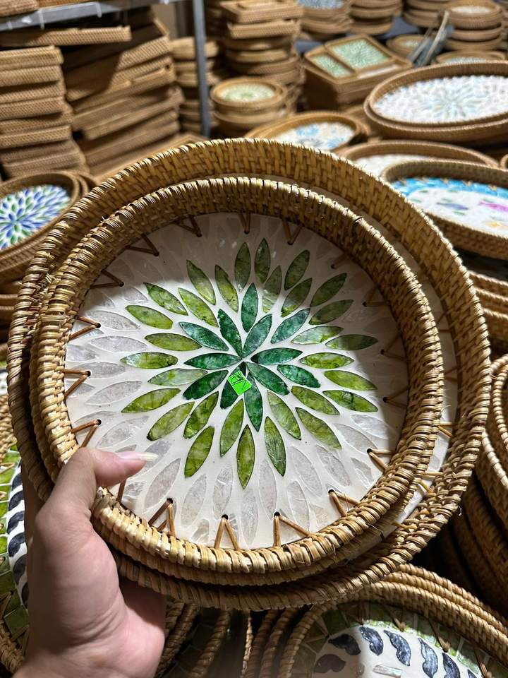 ถาดหวายตกแต่งทำมือคุณภาพสูงพร้อมหูจับ ถาดลอยน้ำในสระ เป็นมิตรกับสิ่งแวดล้อม ผลิตโดย 99 โกลด์ คราฟต์