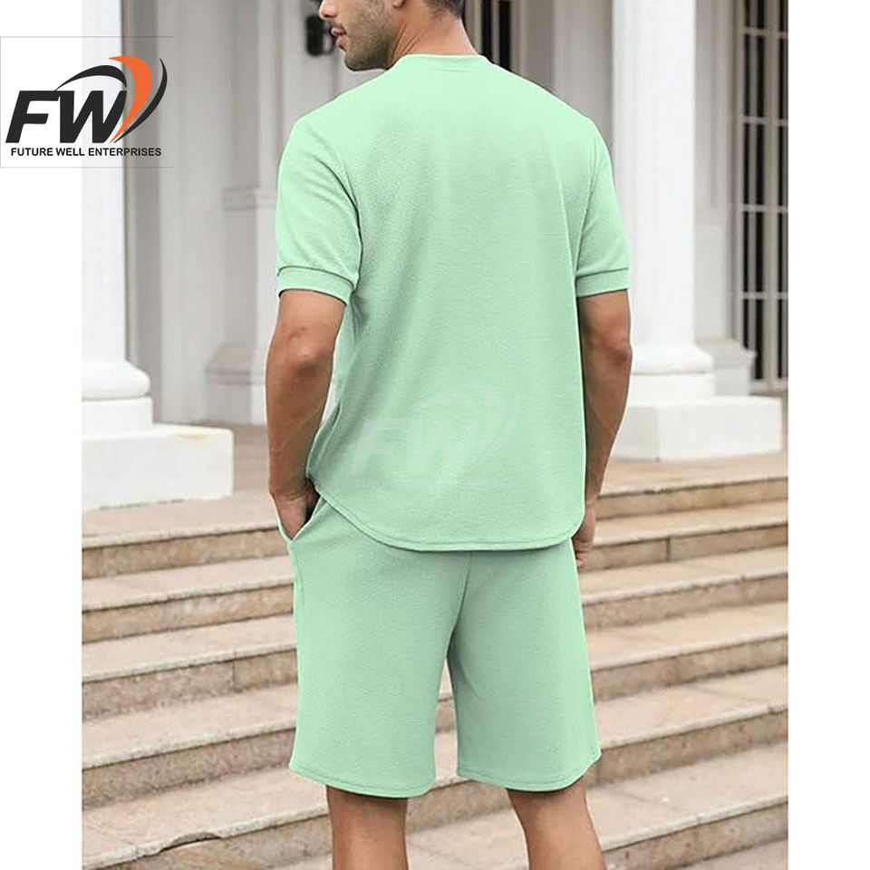 ชุดแฟชั่นผู้ชายขายส่งสำหรับฤดูร้อน ระบายอากาศได้ดี เสื้อผ้าฤดูร้อนแบบเรียบง่าย ชุดผู้ชายไซส์ใหญ่ เสื้อยืดและกางเกงขาสั้นสำหรับผู้ชาย
