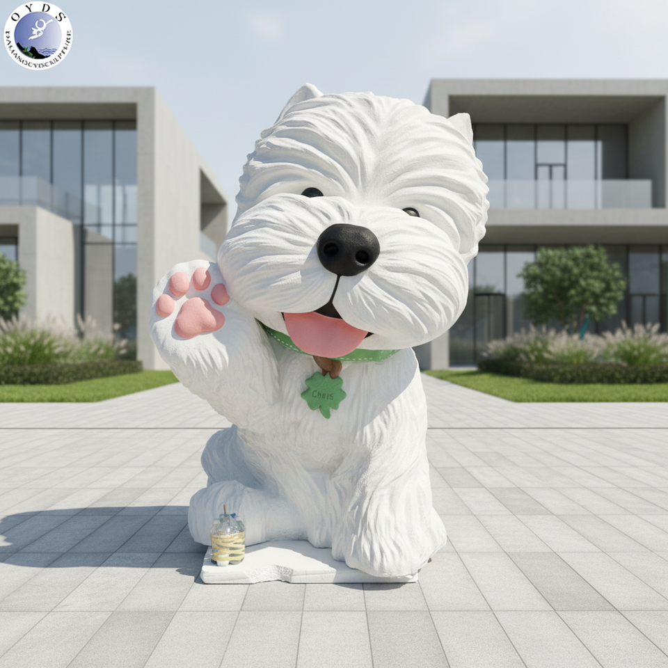ประติมากรรมสุนัขเวสต์ไฮน์ไซบีเรียนขนาดใหญ่คุณภาพสูงสำหรับภายนอกอาคาร ทำจากไฟเบอร์กลาส - กันน้ำและทนทานต่อรังสียูวี เหมาะสำหรับสวนสนุกและพื้นที่สาธารณะ